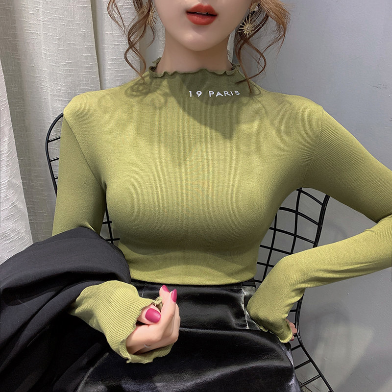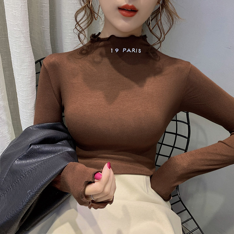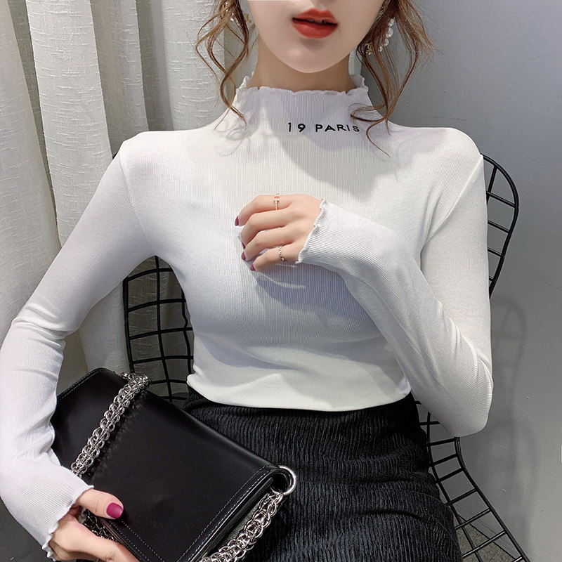 Agaric side half-height collar bottom-shirt woman inside lap 2019 autumn and winter new foreign-style blouses Euro-cargo undershirt long sleeve T-shirt