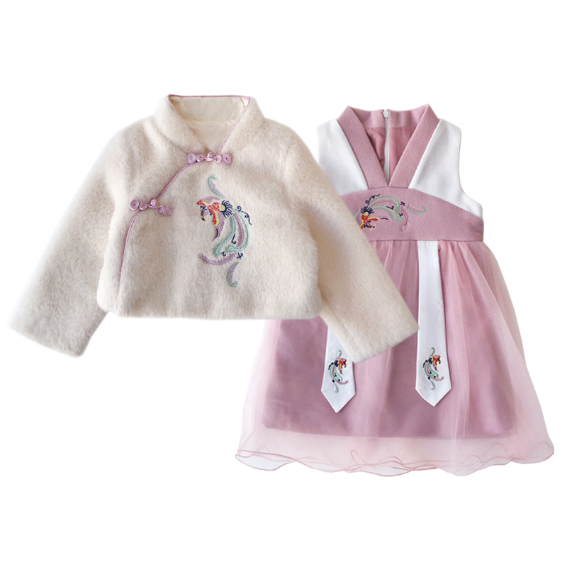 Fall in love with pretty girls Girls net red embroidery Hanfu baby Western style winter clothing children's New Year's clothing Tang suit