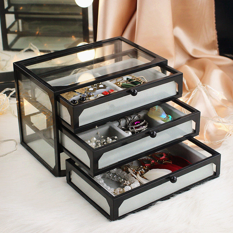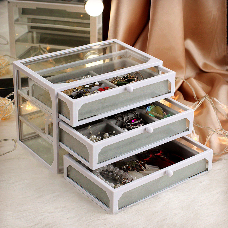 Three-layer glass jewelry box (white) three-layer glass jewelry box