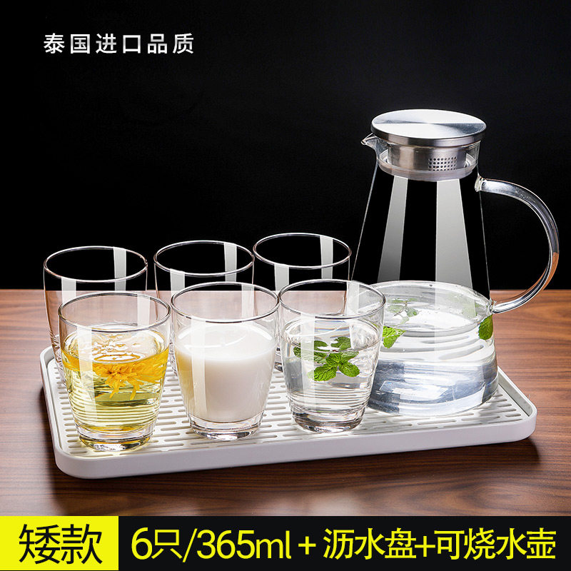 Thailand imported household glass set Heat-resistant lidless tea cup Milk cup Transparent drinking cup 6pcs