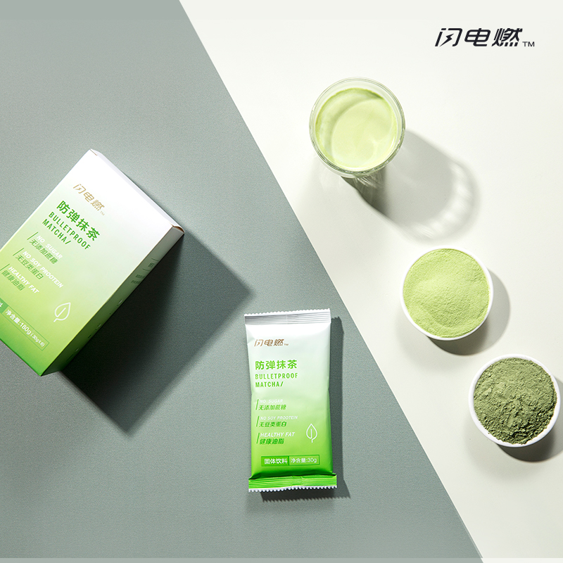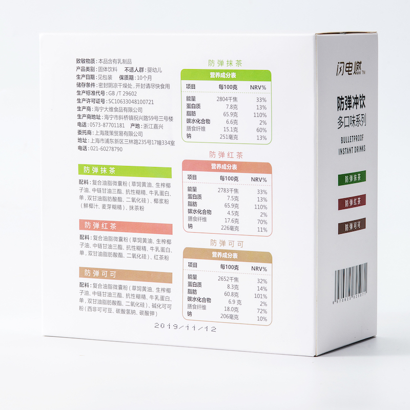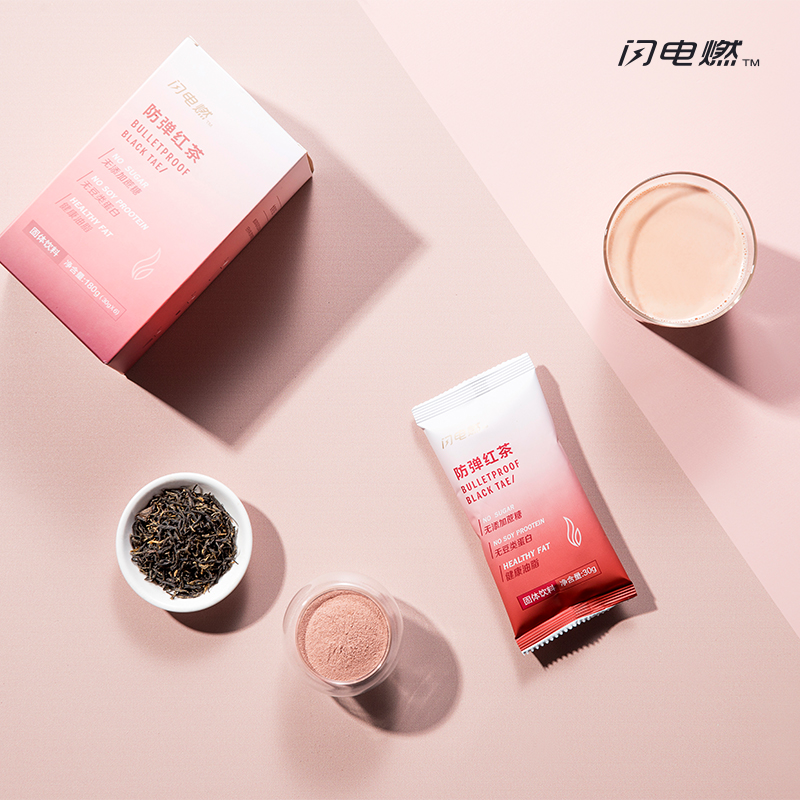 Lightning-fired bulletproof flush drinking black tea cocoa coffee MCT oil powder ketogenic meal replacement low satiety low