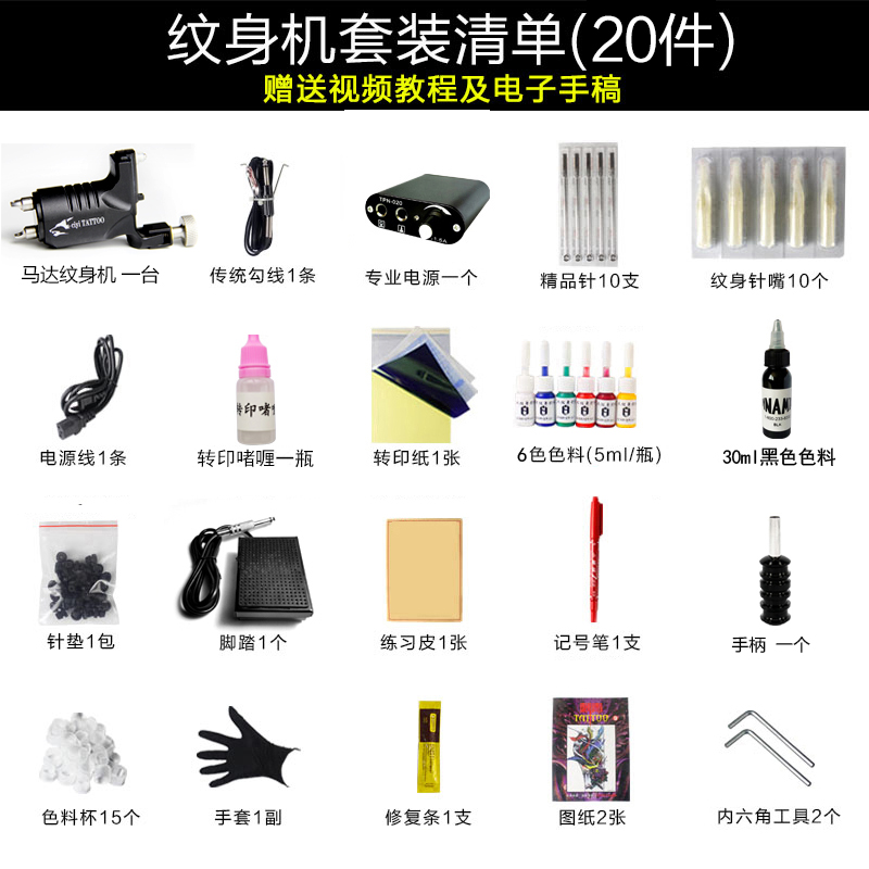Motor tattoo machine set professional self-study full set of machine beginners learn tattoo tools equipment fog cutting line