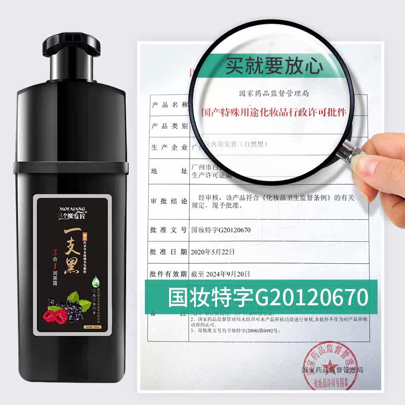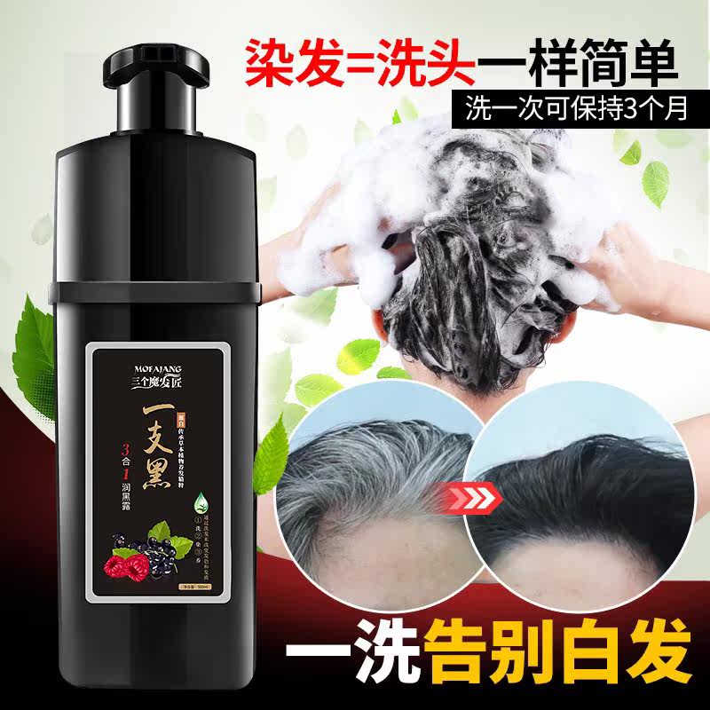 Three hair trolls one black hair dye white wash black hair dye cream natural plant black dew dye 500ml at home