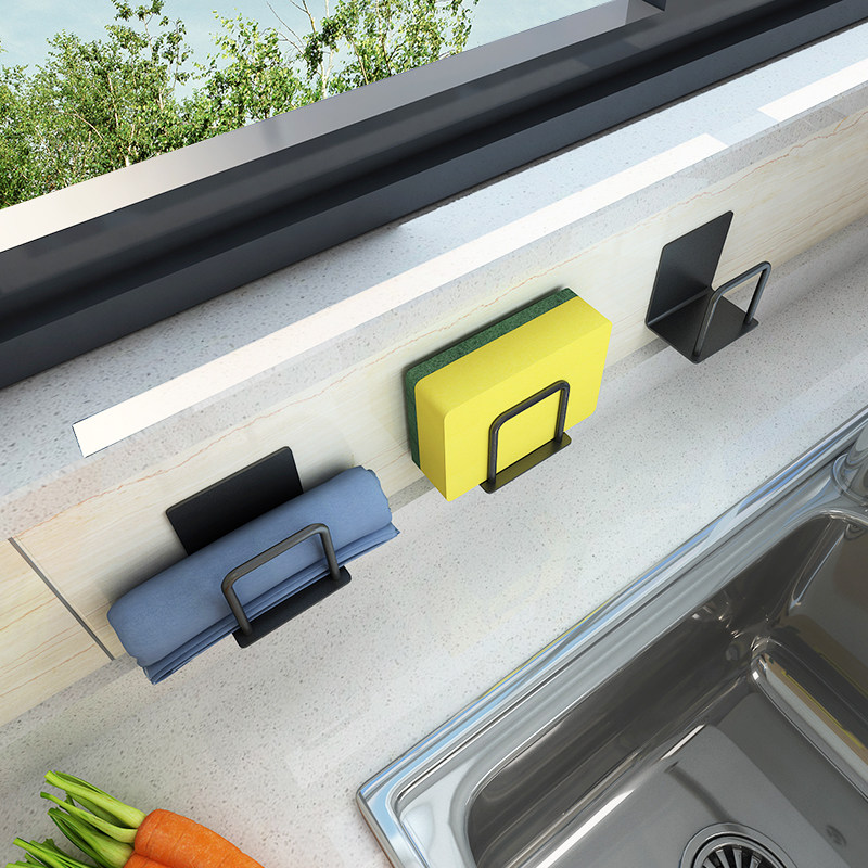 Nordic kitchen stainless steel white sponge rack (no punching) (one pack) Nordic kitchen stainless steel black sponge rack (no punching) (one pack) Nordic kitchen stainless steel black sponge rack (free of charge)
