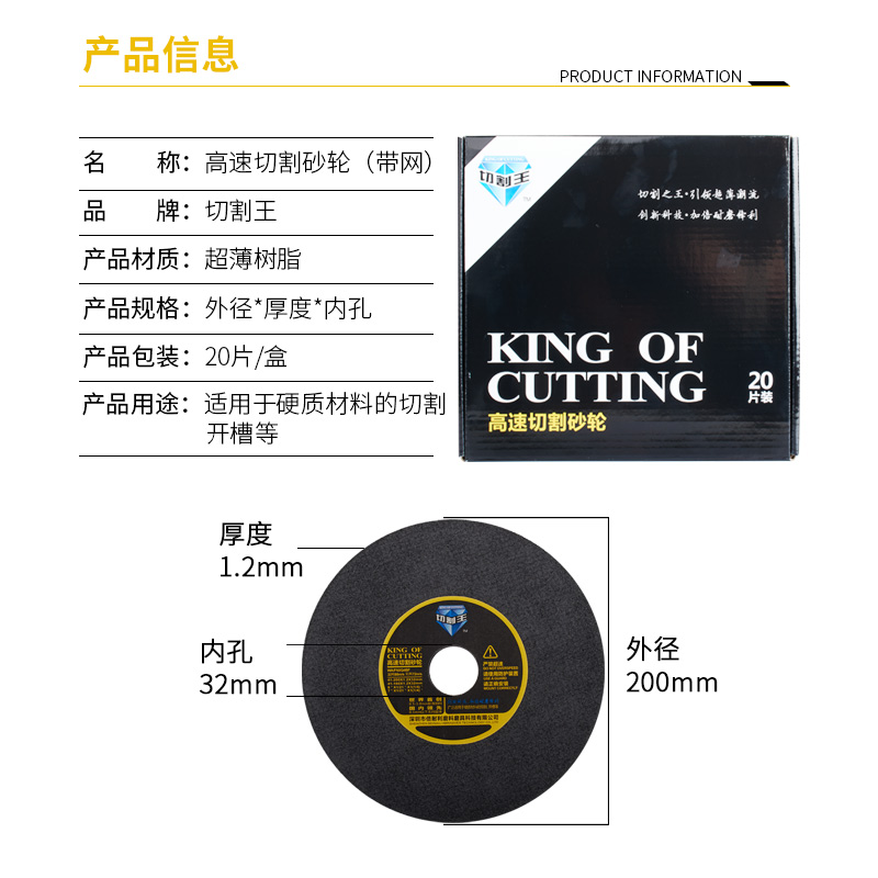 Cutting king grinder cutting blade 8 inch belt mesh metal stainless steel ultra-thin cutting wheel blade 200*1 2*32 saw