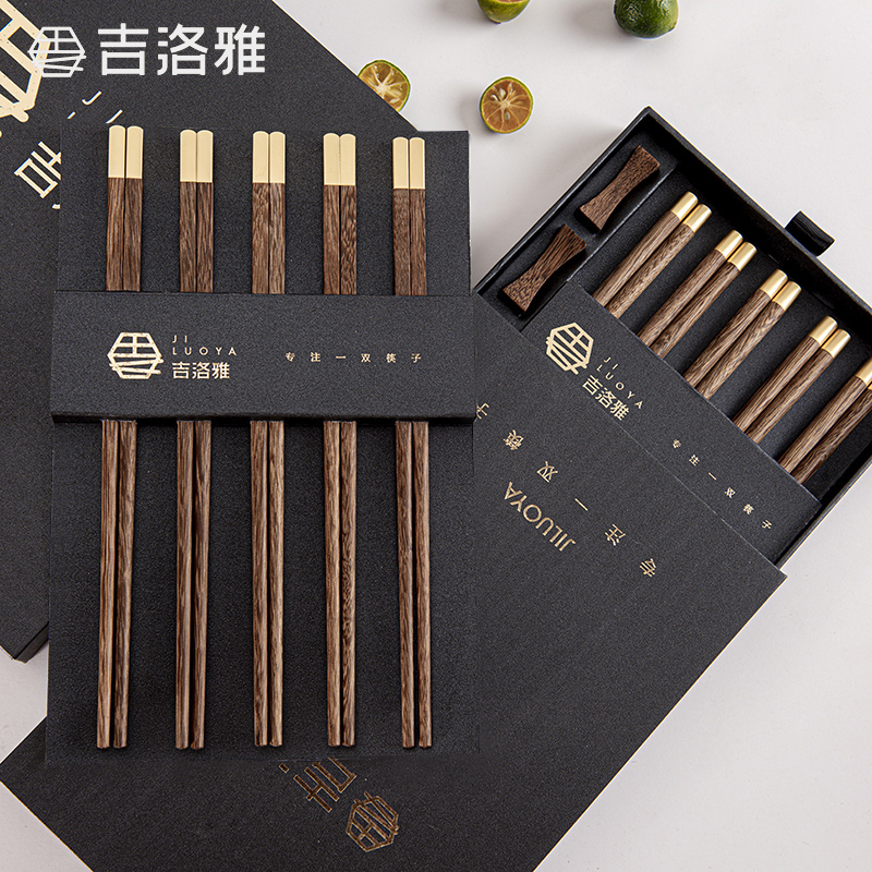 Geroya natural chicken wing wood chopsticks Fuzi mahogany solid wood chopsticks no paint no wax high-end household chopsticks 10 pairs set