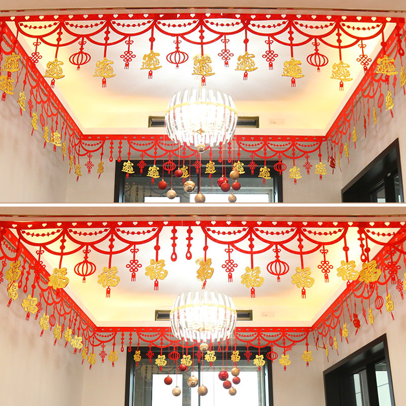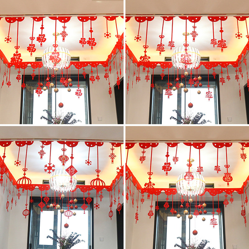 New Year's Day Fu word pull flower pendant pendant Spring Festival New Year shopping mall jewelry store kindergarten classroom pull flower decoration