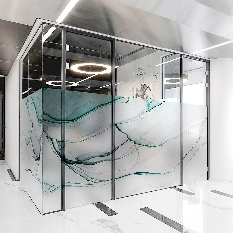 Marble pattern company glue-free electrostatic frosted glass film office new Chinese partition sticker pattern customization