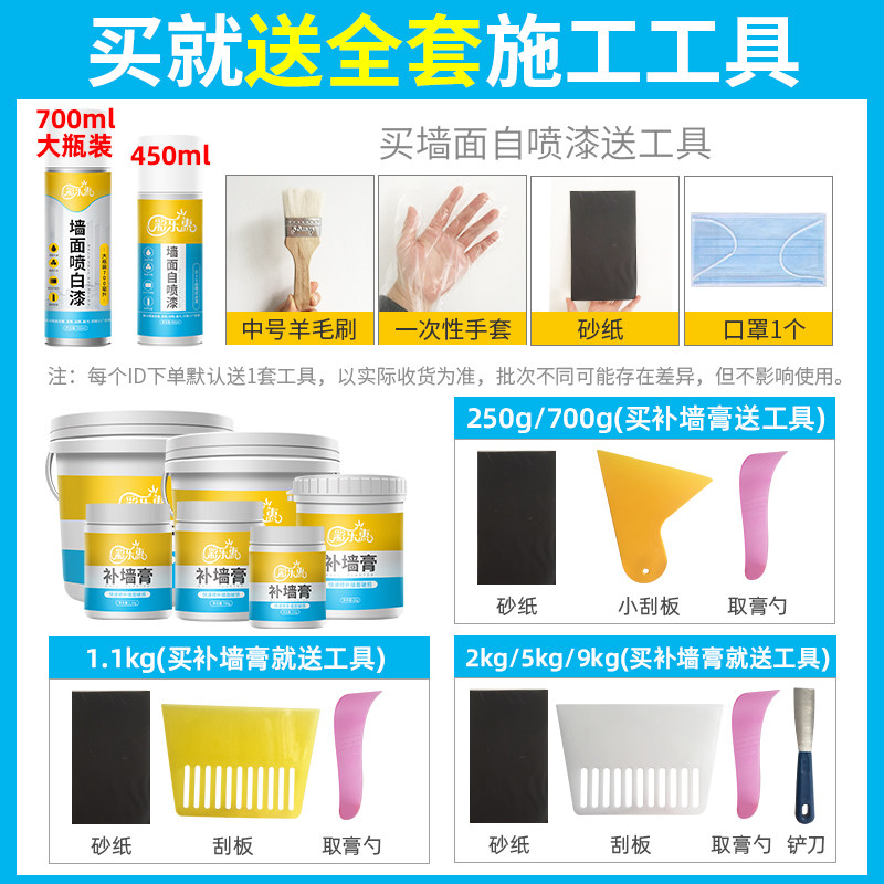 Wall repair paste (buy 1 get 1 free)Get 1 free repair paste tool Wall paint can 1 bottle (self-spray type slight odor) (send tools) Wall paint can 1 bottle(self-spray type slight odor)