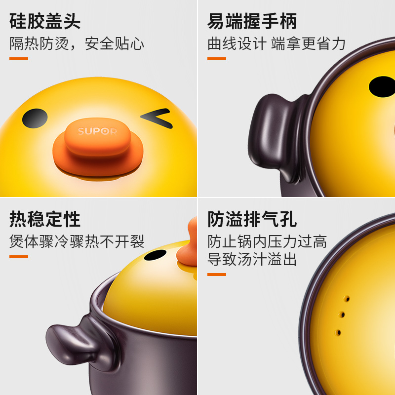 Supor casserole high temperature resistant clay pot soup pot ceramic small casserole pot soup pot stew pot open fire clay pot rice soup pot