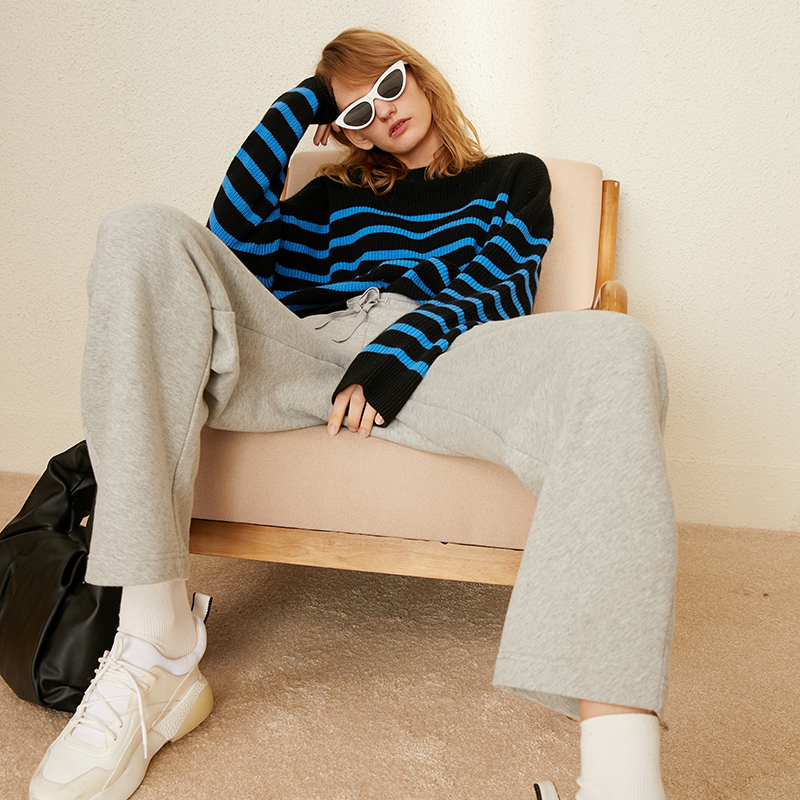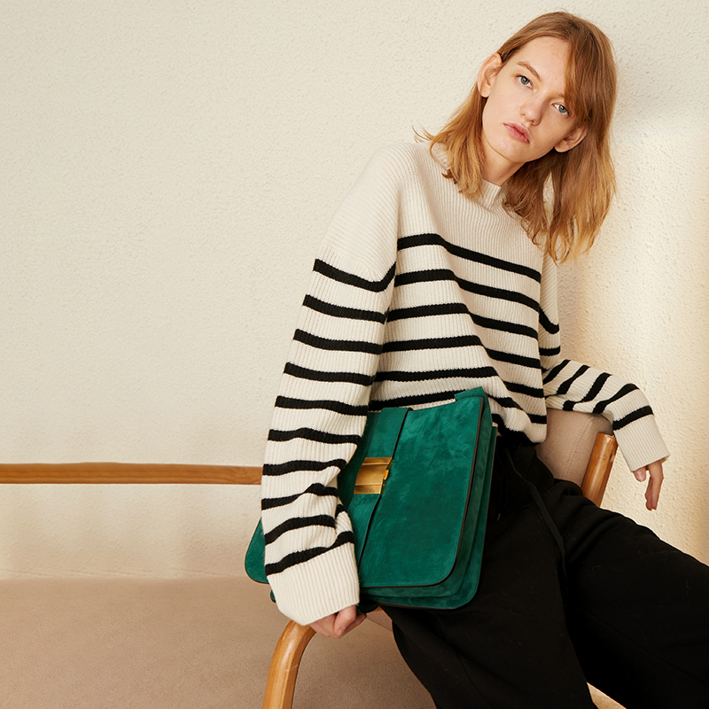 Focus on ten years of fine line series Exquisite hand-made color stitching striped silhouette pure cashmere needle