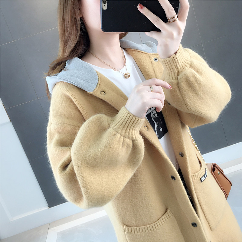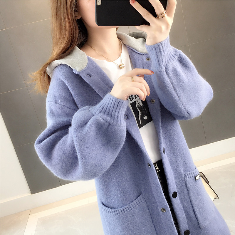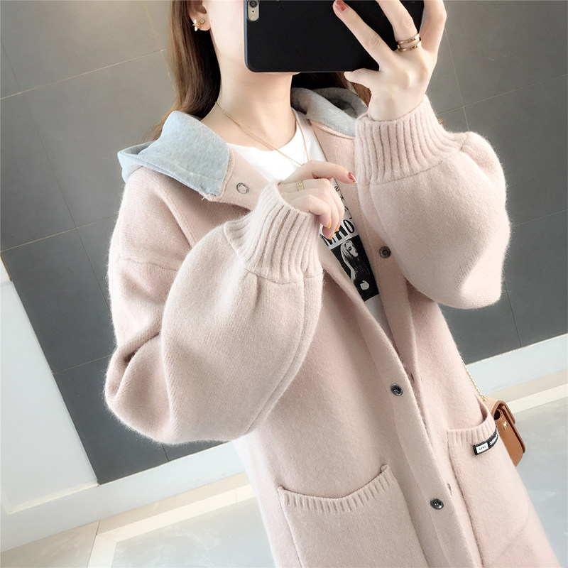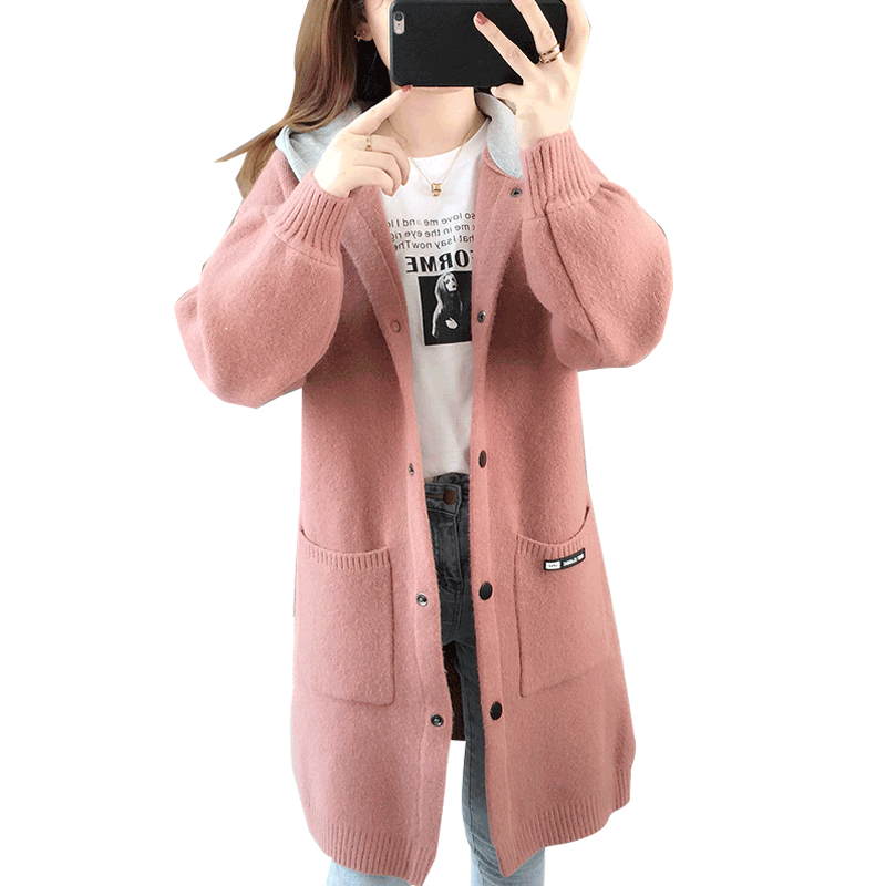 European Station Network Red Lazy Breeze Knit Cardiovert Woman in the middle of the new 2023 autumn and winter foreign air Han version with cap sweater-Taobao