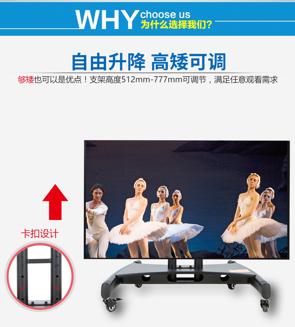 Rostrum stage TV mobile bracket cart conference room low All display hanger floor vertical tilt