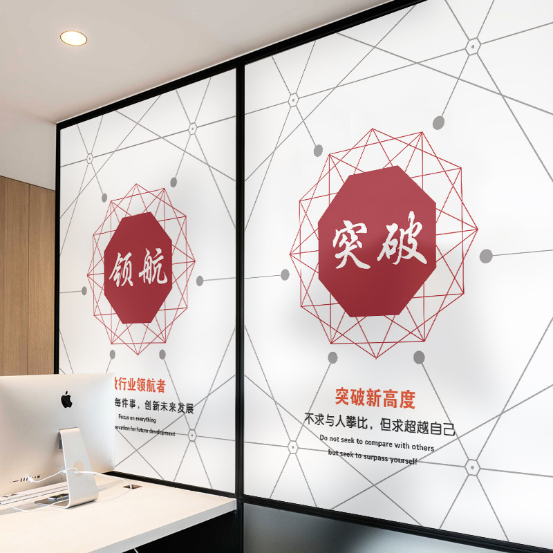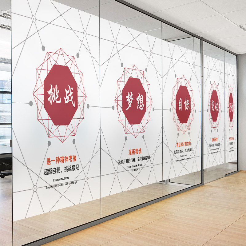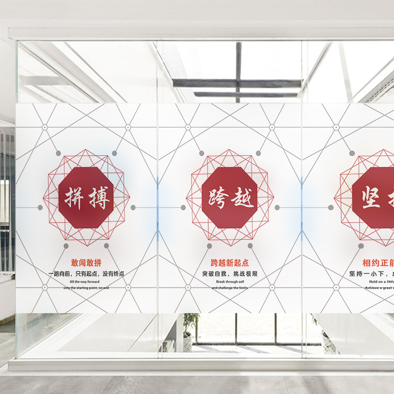Custom office company corporate culture inspirational glass film frosted electrostatic glass stickers anti peeping light