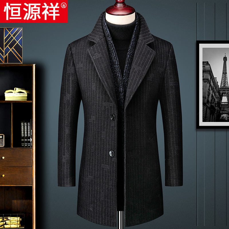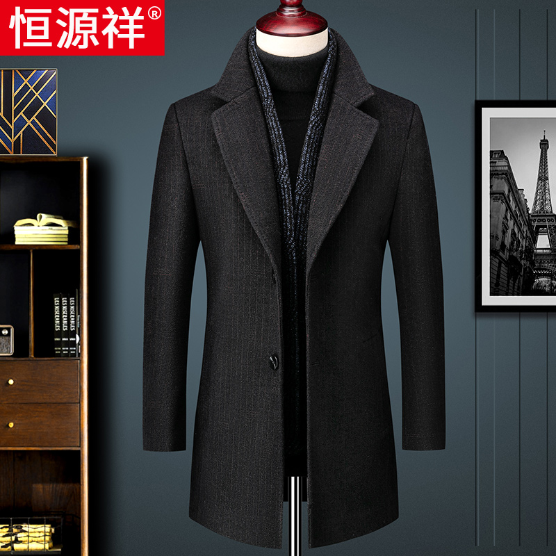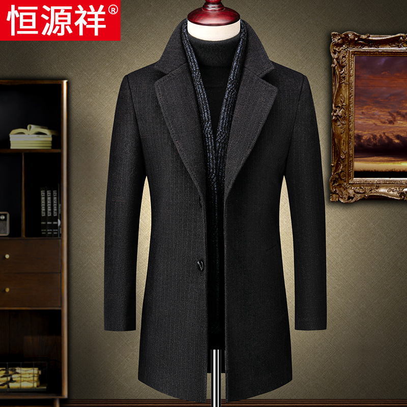 Hengyuan Xiang wool What about the long version of autumn and winter middle-aged men in the men's clothing Thickened Dpa Windcoat Boom