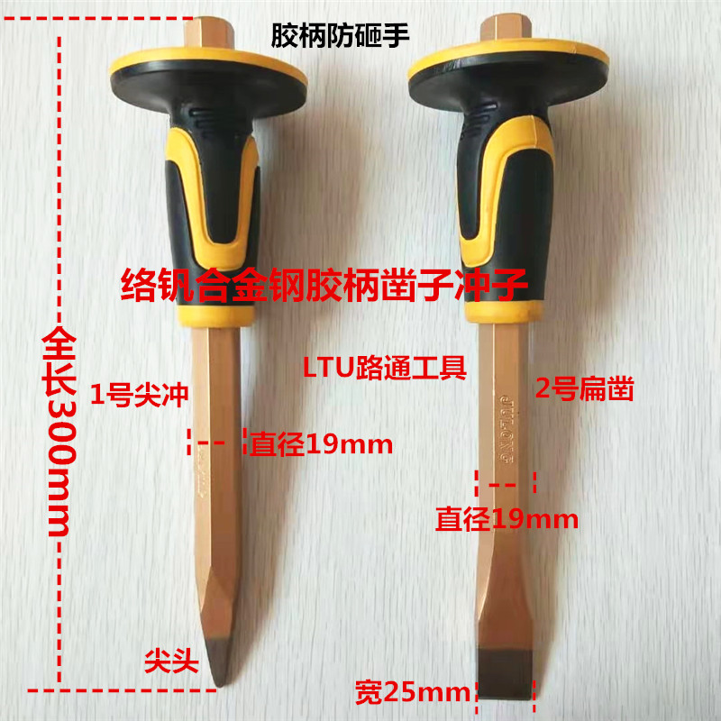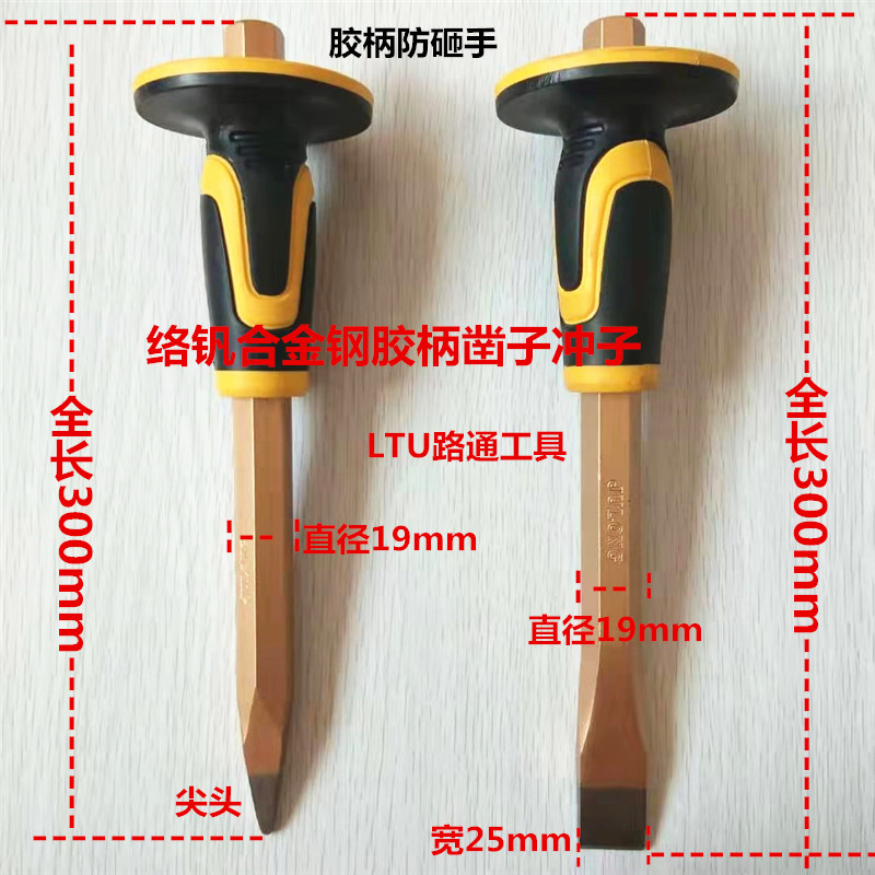 Vanadium alloy steel chisel rubber frame vanadium alloy steel spike shank vanadium alloy steel chisel 1 set of vanadium alloy steel rubber frame 250 long vanadium alloy steel rubber handle flat 300 long vanadium steel rubber frame