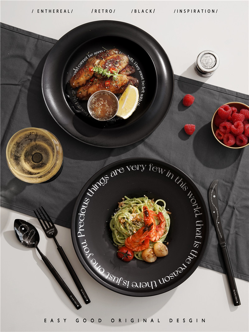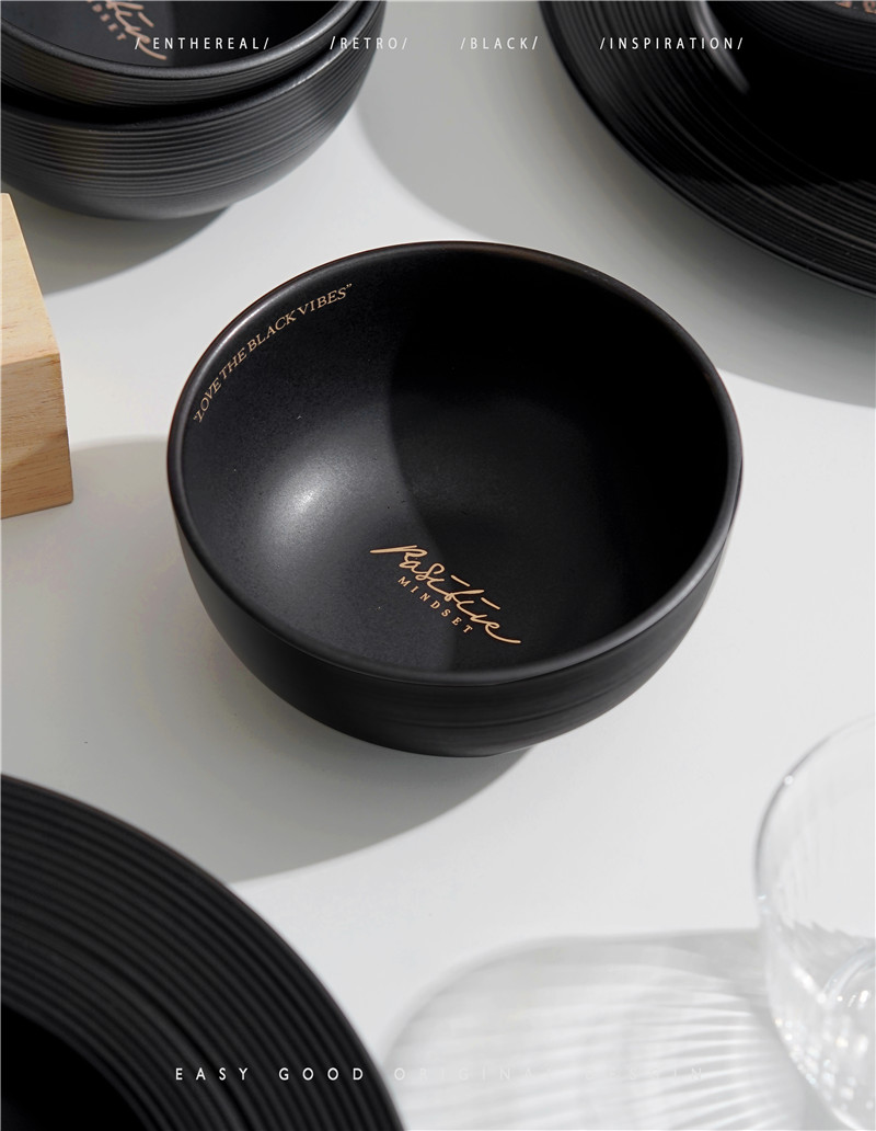 Black and white embossed dinner plate (light imperfections do not depress) black and white embossed dining bowl (light imperfections do not depress) quiet black pottery porcelain cup (imperfections do not depress) bronzing gold one cup (imperfections do not depress) Blackfoot glass Cup A paragraph