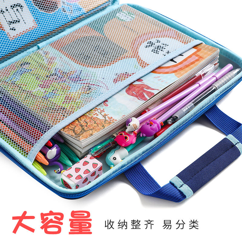 Primary school students waterproof tuition bag handbag children's tuition bag cute cartoon hand carrying book bag boys and girls cartoon bag baby primary school test paper storage information bag art tool kit