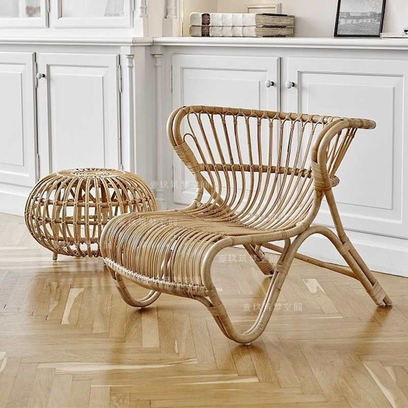 Natural Rattan Chair ins Rattan Chair Balcony Sofa Chair Bedroom Living Room Leisure Home Single Deck Chair Design