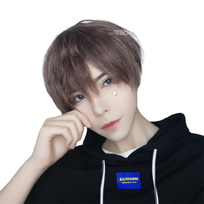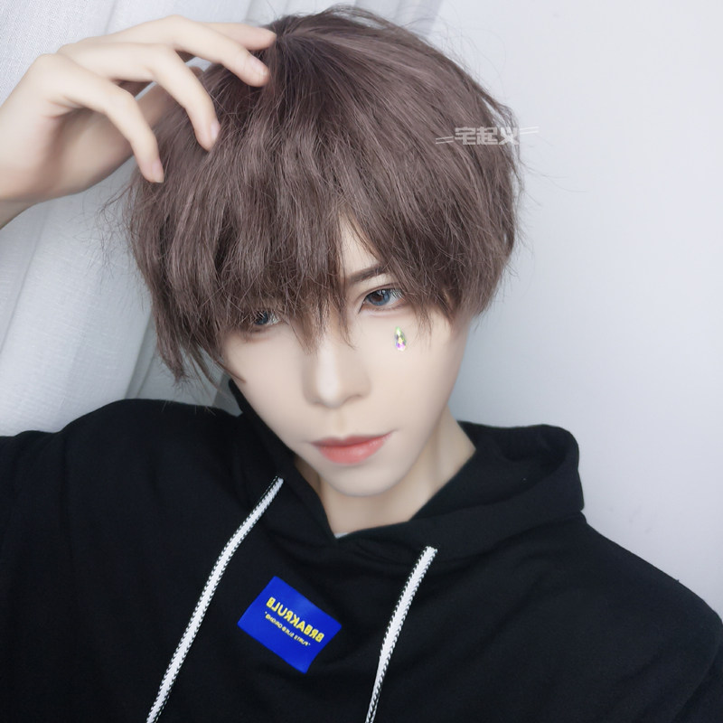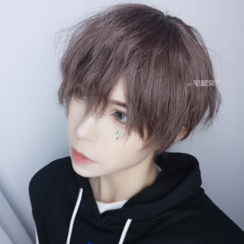 House Uprising Wig Men's Short Straight Hair Korean Version Handsome Gray-colored Daily Men's Natural Fluffy Wig Full Head Cover