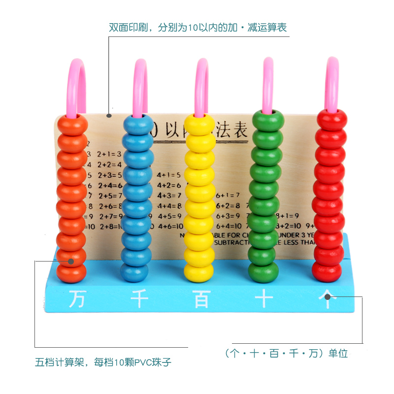Calculation rack children's arithmetic teaching aids first grade primary school students mathematics five-speed wooden abacus bead counting addition and subtraction counter