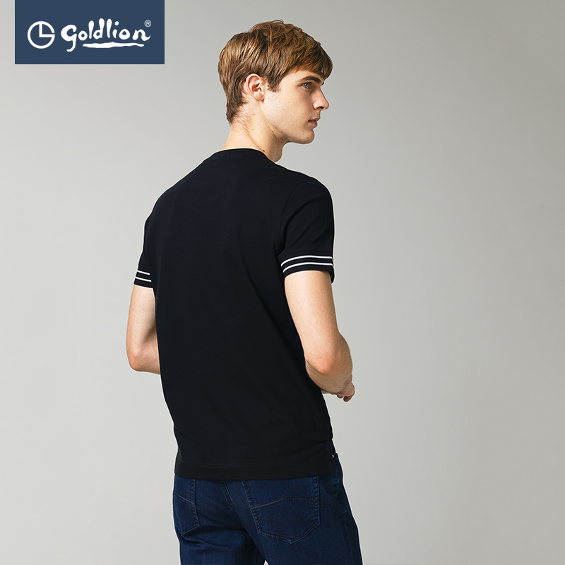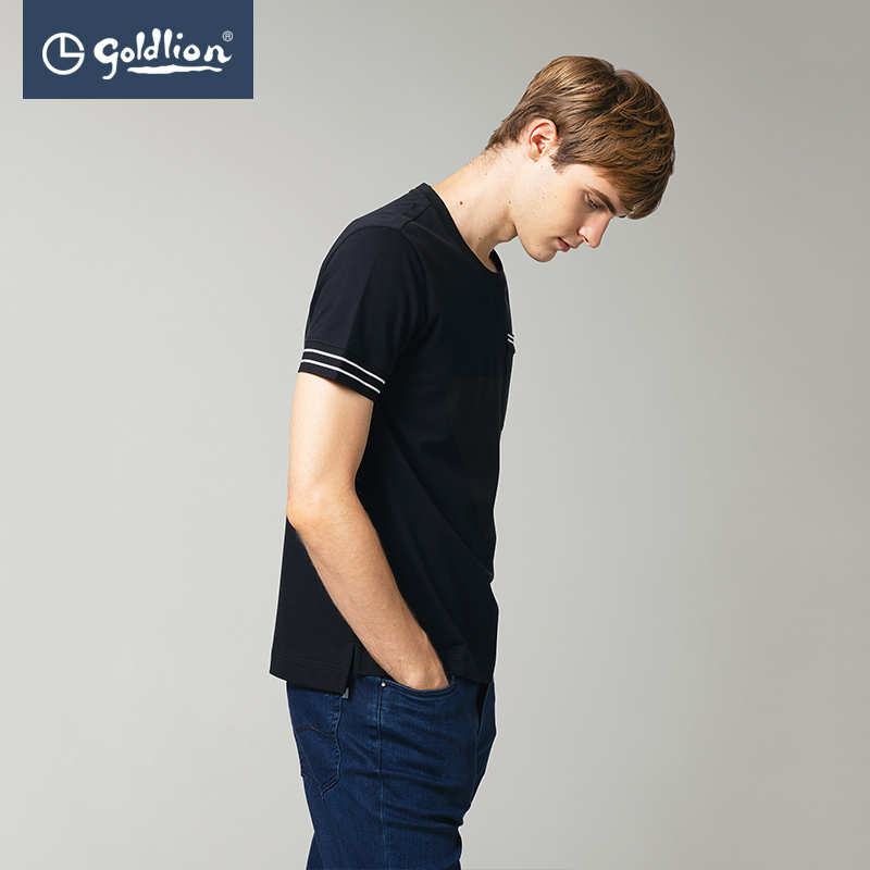 Ginley Coming Spring Summer Men's Comfort Breathable Fashion Brief Splicing Casual Black Round Collar Short Sleeve T-shirt