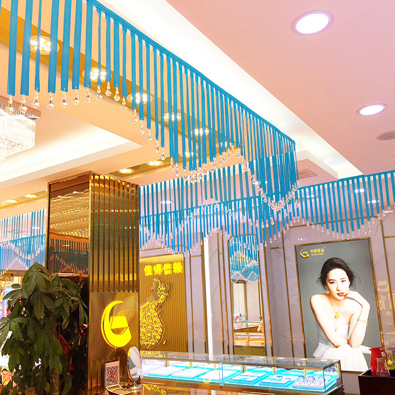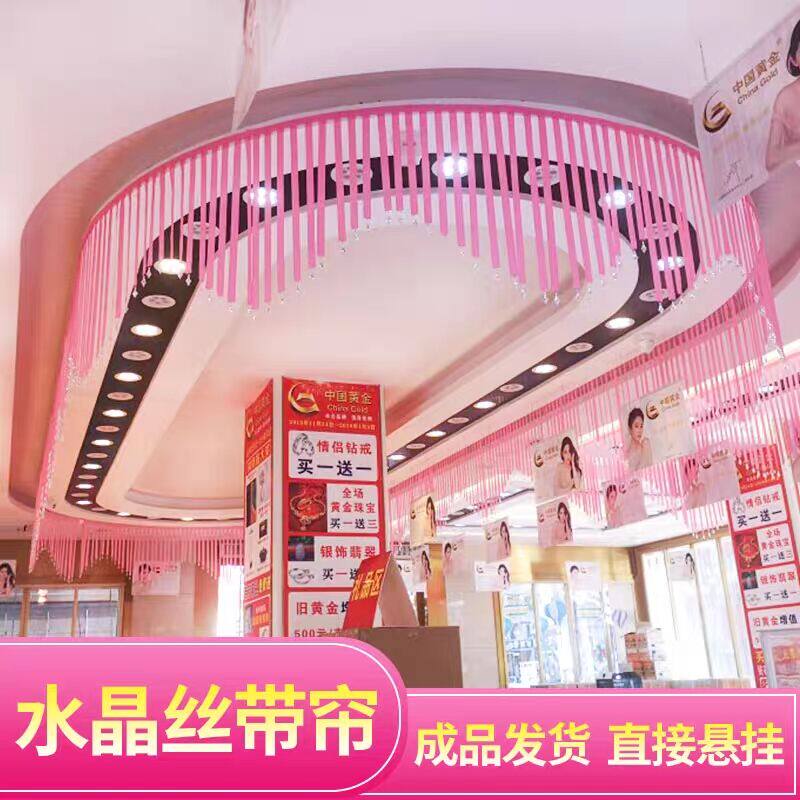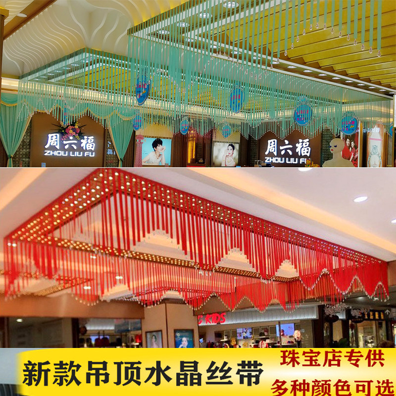 Wedding Decoration Crystal Silk Ribbon Jewelry Shop Suspended Ceiling Decoration Color with Gold Shop Ring Island Decorative Silk with Wedding Festive Prop