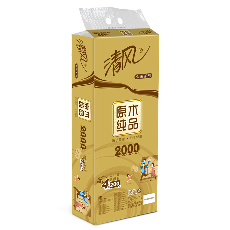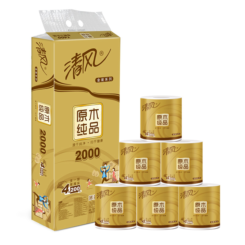 Qingfeng roll paper log pure product 4 layers of gold 200G roll paper whole box 60 rolls toilet paper toilet paper toilet paper