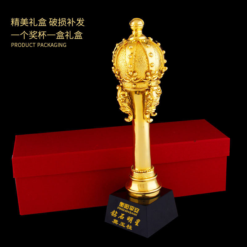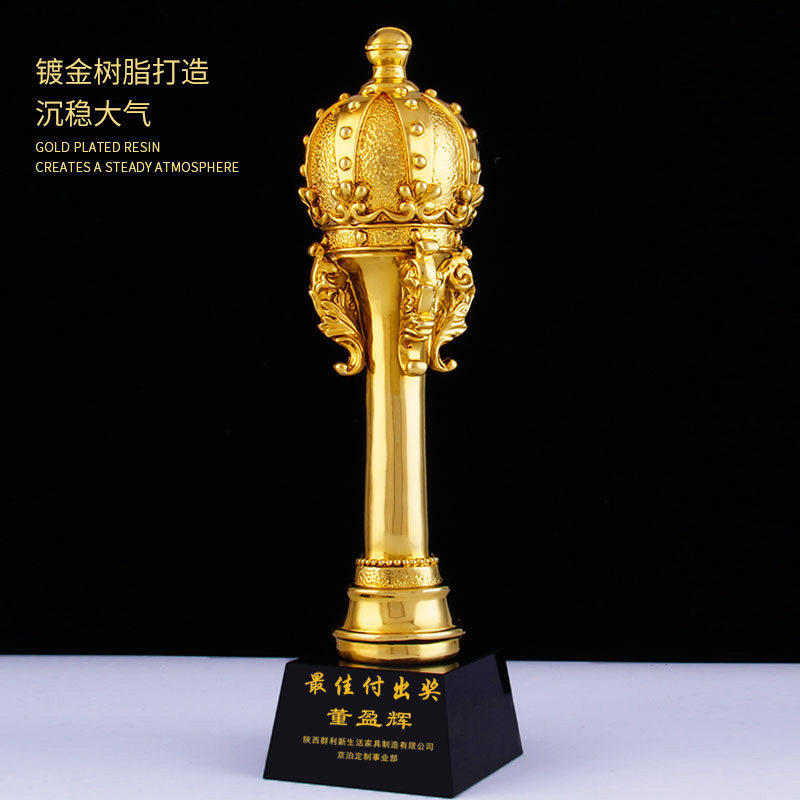 Gold-plated resin crown brilliant crystal trophy custom-made company annual meeting employee award business star