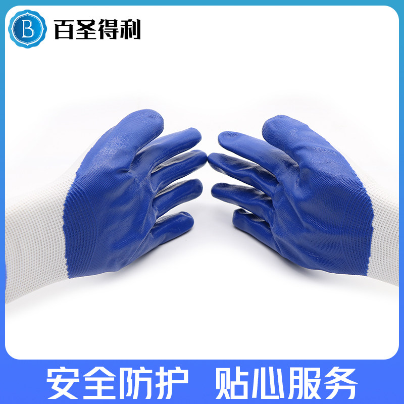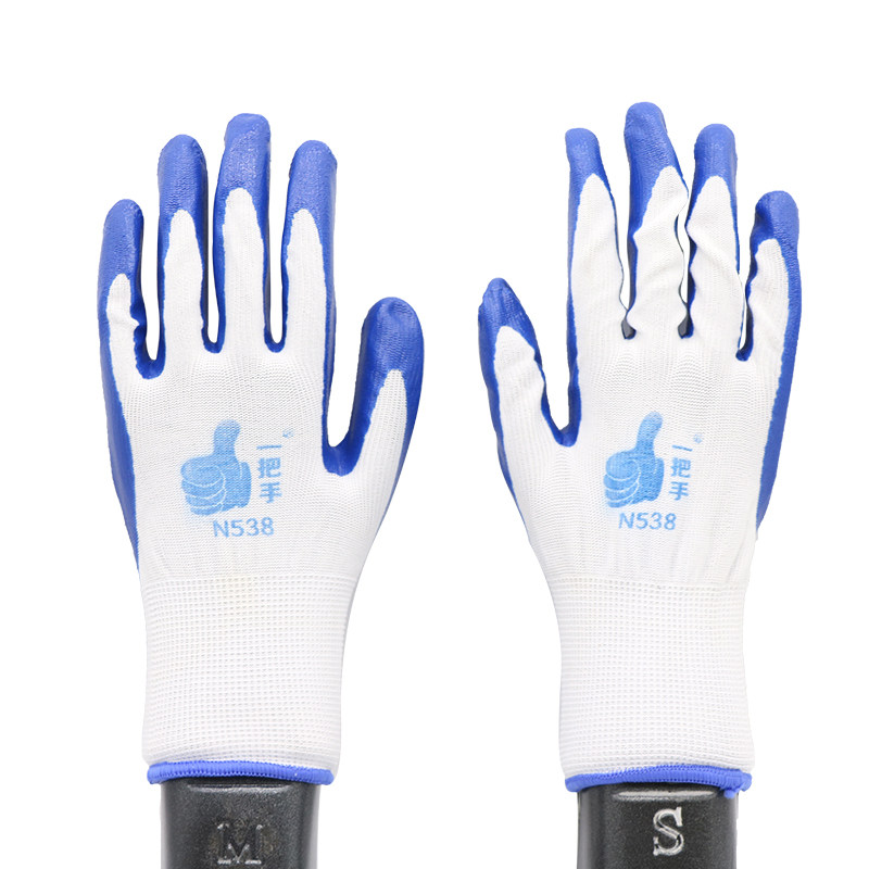 Dengsheng N538 one-handed white gauze palm dipped blue nitrile gloves labor protection wear-resistant comfortable breathable non-slip gloves