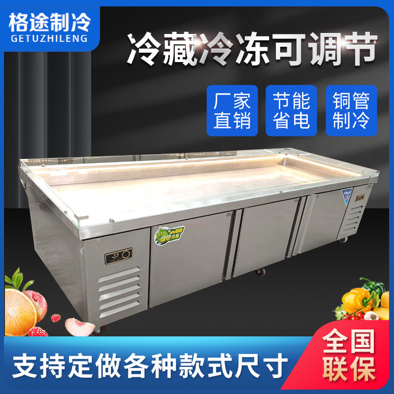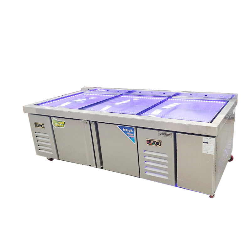 Ice table seafood refrigerated dishes supermarket display table commercial horizontal fruit fishing a la carte restaurant frozen flat freezer