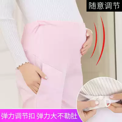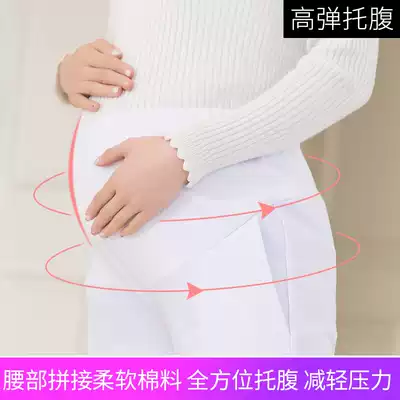 Pointed lion pregnant women nurse work pants belly adjustable white and blue large size elastic waist pregnant women