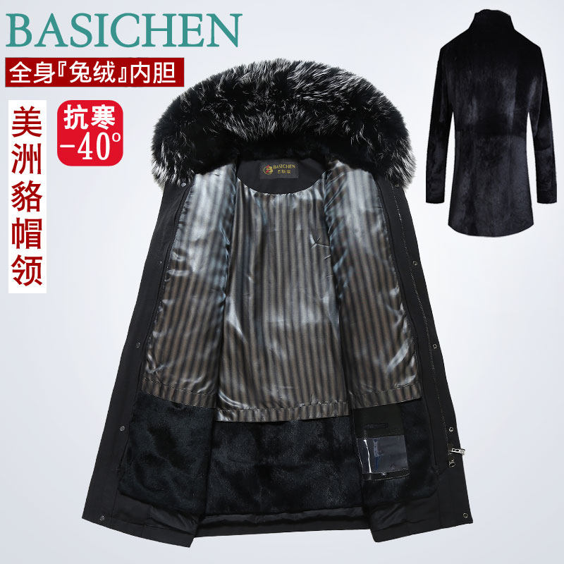 Pie overcomes fur all-in-one men's youth Rex rabbit fur liner Ni overcomes men's long version thickened fur coat jacket