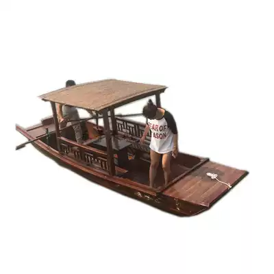 5 m single canopy wooden boat Park scenic spot Chinese tourism hand rowing boat landscape decoration cleaning fishing boat