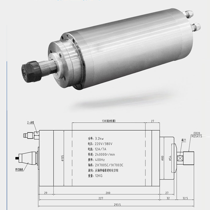 Hon Qi 3 2KW motor front stroke GDZ-24-2 water cooling 105 diameter high-speed engraving machine wood stone electric spindle