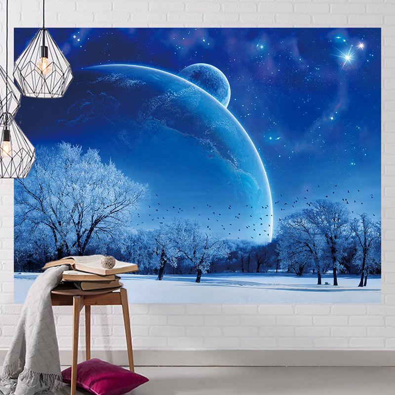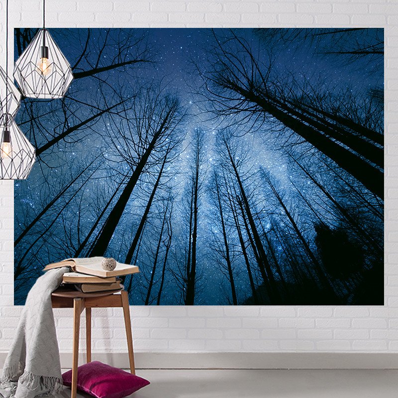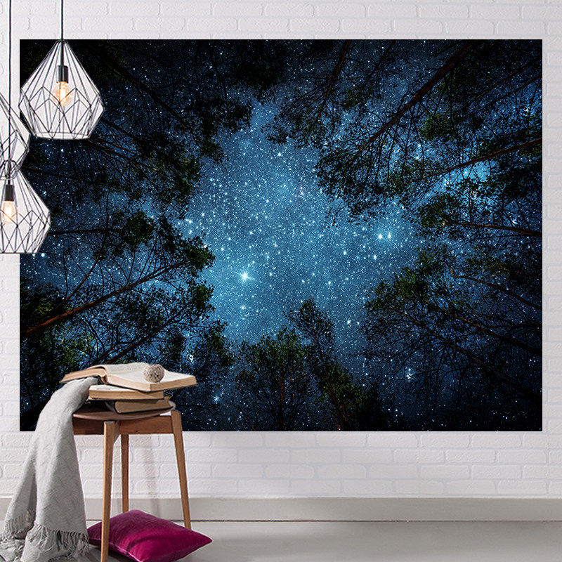 Starry sky dense forest background wall net red hanging cloth room layout wall cloth Nordic girl heart room layout background cloth