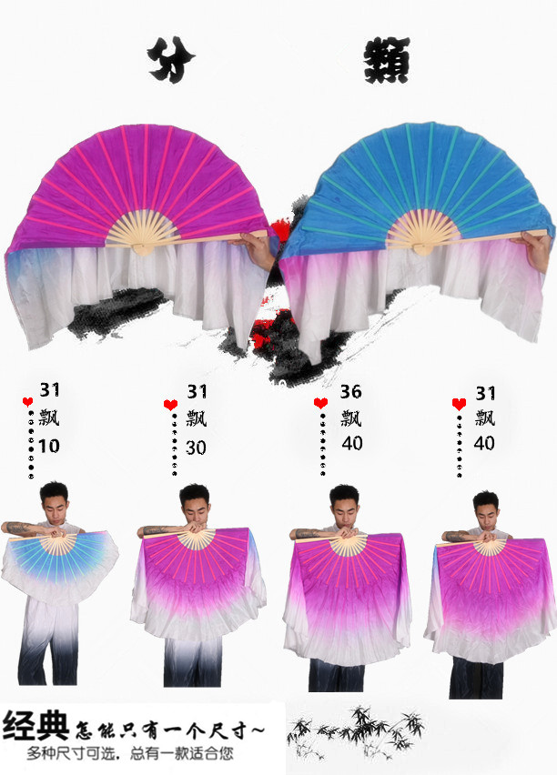 The original Jiaozhou Yangge dance fan silk dancing fan Wind crisp rain reminiscence double-sided two-color show color fan Kite fan