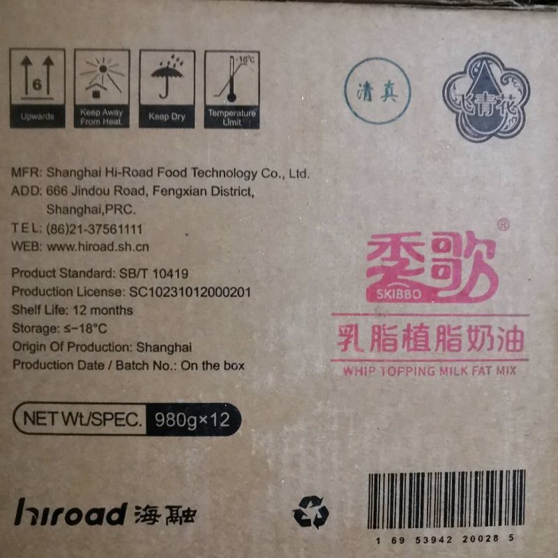 Sea Thaw Season Song Milk Fat Cream Cream Cream Cream Cake bread Decorative Sandwich Cream 980g * 12 bottles