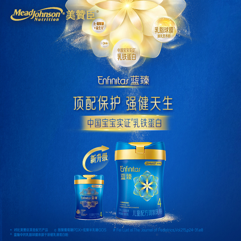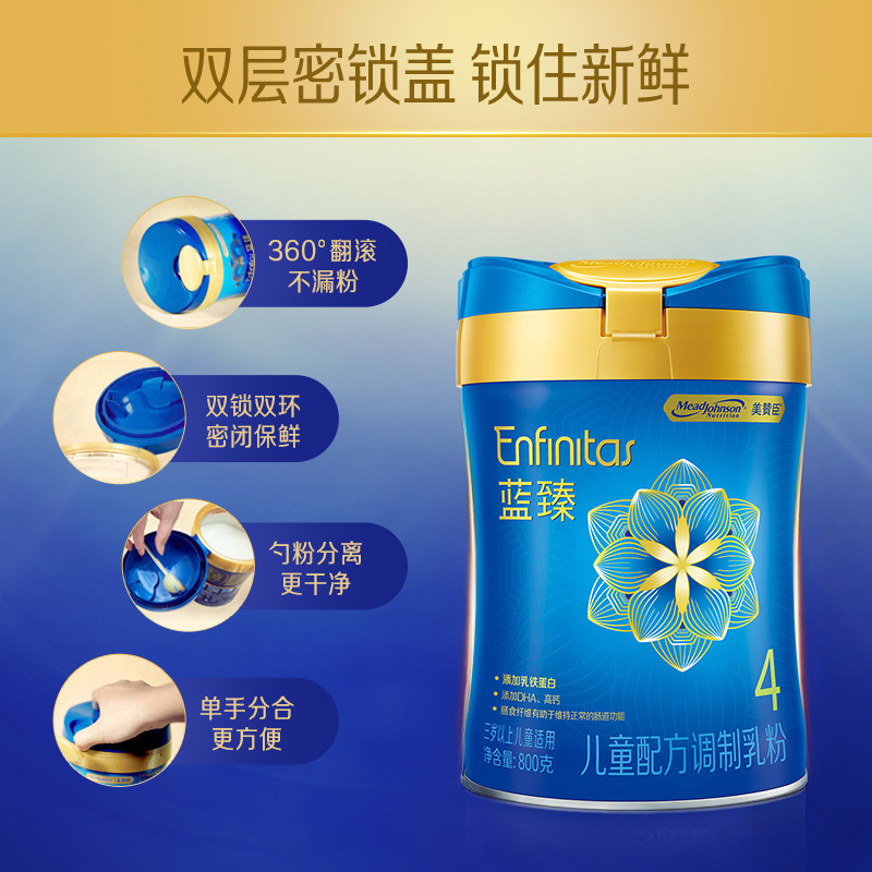 (more than 2 cans of RMB276 cans) Mej&Johnson's second generation Blue Zhen 4 paragraphs Children's milk powder 800g Single canned