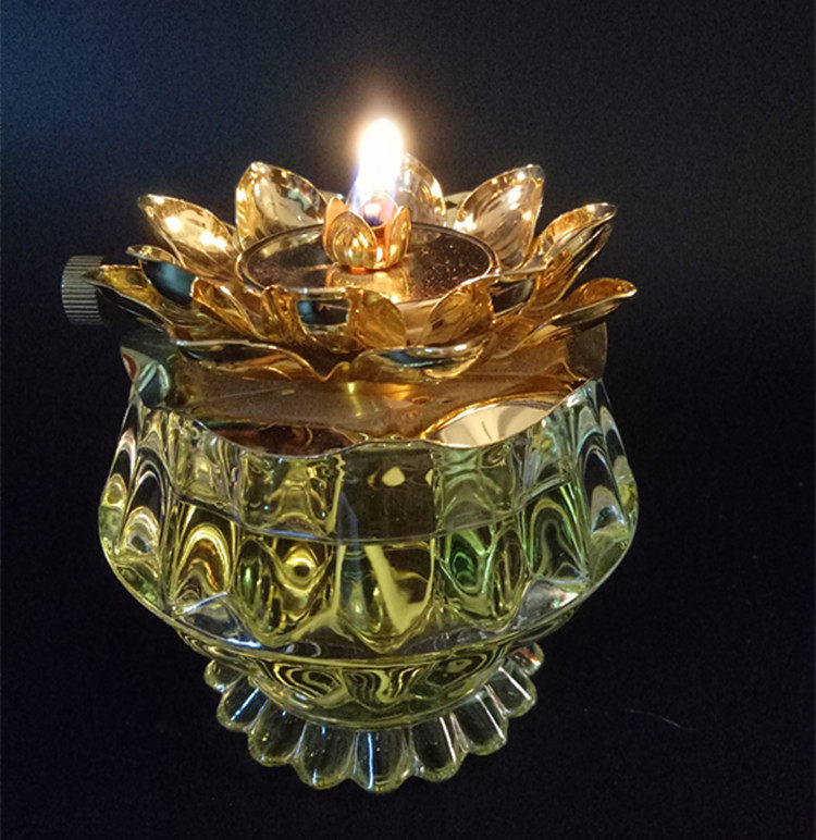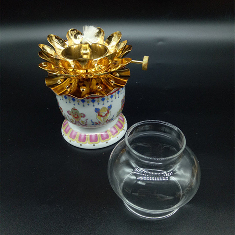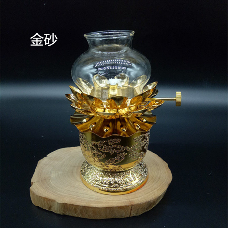 Small number of oil cups Home Buddha lotus light Eight auspicious ghee oil lamp gold sand ghee lamp ceramic lotus light windproof