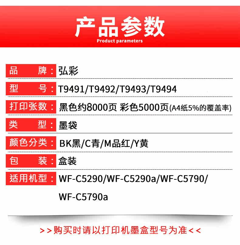 Applicable to Epson T9491-9494 cartridge WF-C5790A C5290A C5290A ink bag