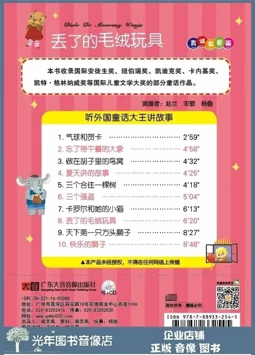 The original version of the plush toy 1CD book listens to fairy tale school students reading and painting disc