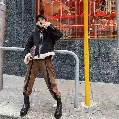 Six gold home personality zipper decoration plus velvet sweatpants women 2019 Winter New loose thin elastic waist pipe pants