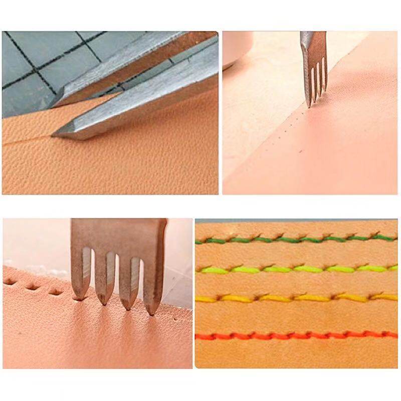 Quality white steel rhombus-cut diy leather handmade leather art punching front line 3-4-5-6mm tool suit whole set