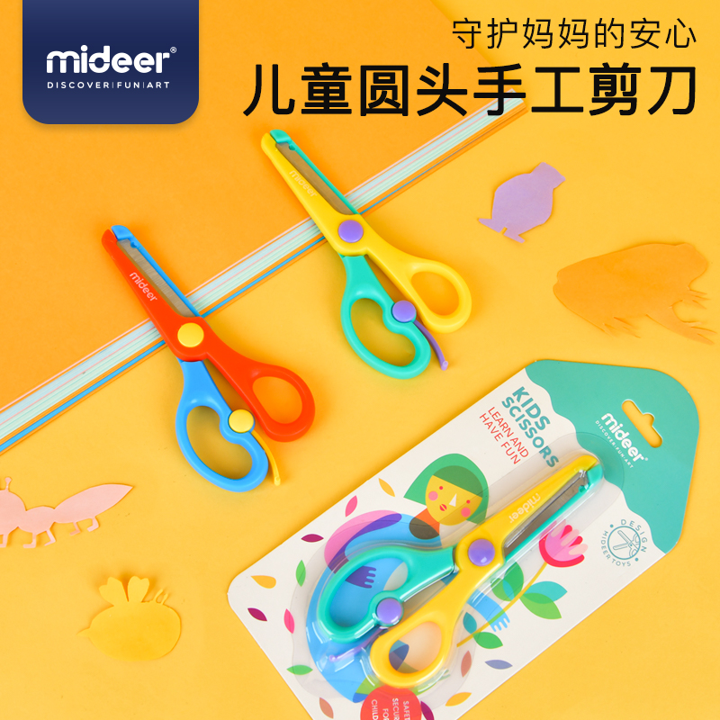 Milu kindergarten children's handmade paper-cut scissors round head does not hurt hands trumpet art scissors fine motor training