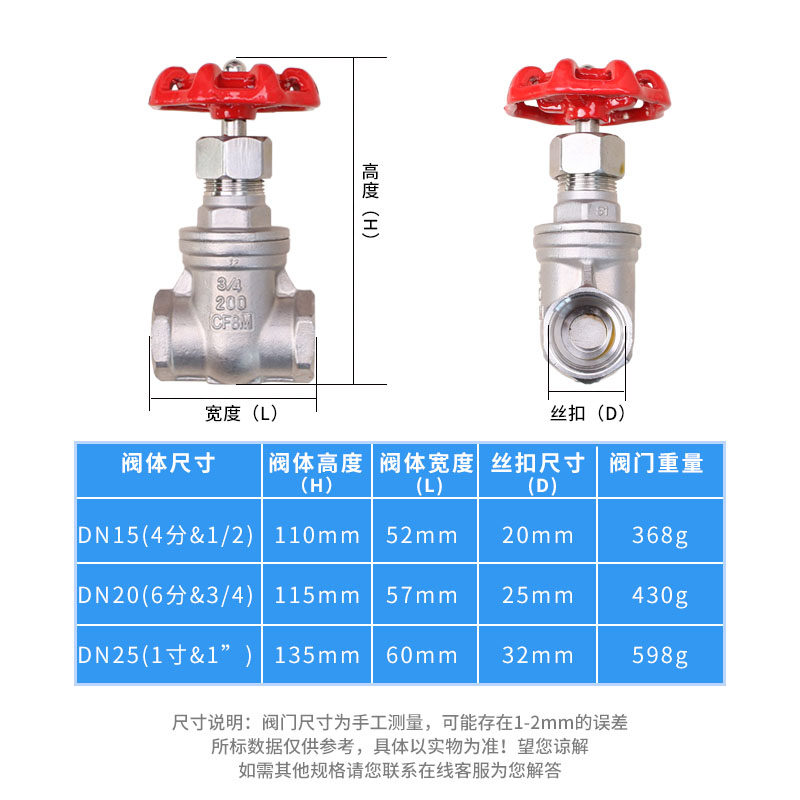 304 internal thread wire buckle stainless steel gate valve Z15W-16P tap water pipe switch DN15 -80 4 6 points