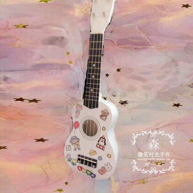 Ukulele white wooden beginner entry ukulele 21 inch 23 inch small guitar ukulele lettering - Taobao