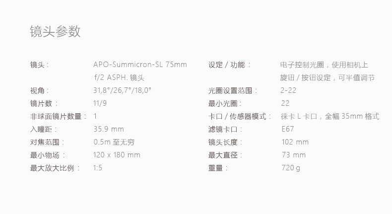 Leica Leica SL Lens APO-SUMMICRON-SL 75 f 2 ASPH Black 11178