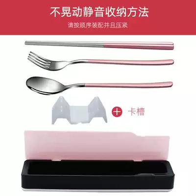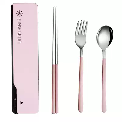 Cute 304 stainless steel portable tableware set Student office worker chopsticks spoon fork three-piece set tool box