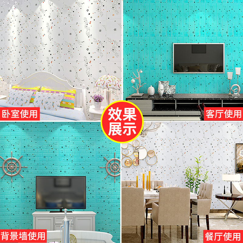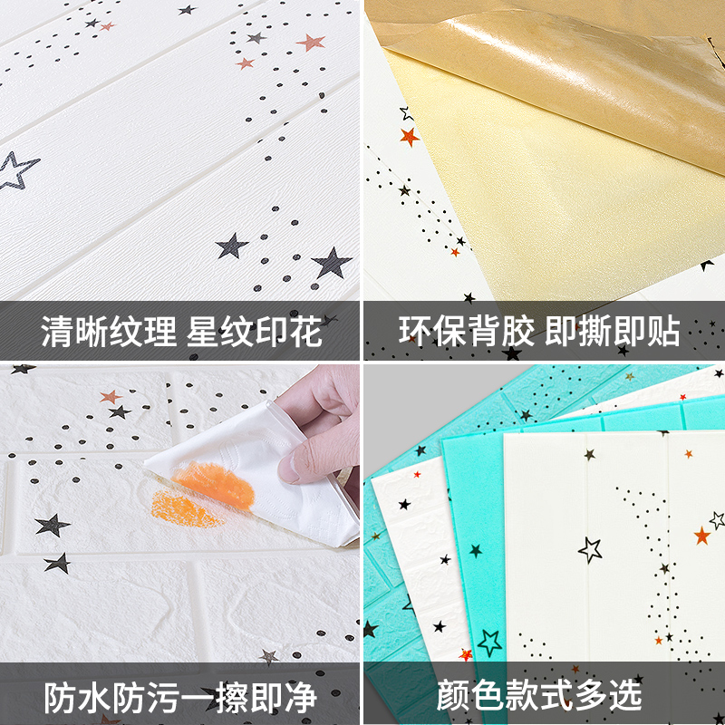 Wallpaper self-adhesive 3d three-dimensional wall sticker bedroom warm children's room star foam brick soft bag wallpaper waterproof and moisture-proof